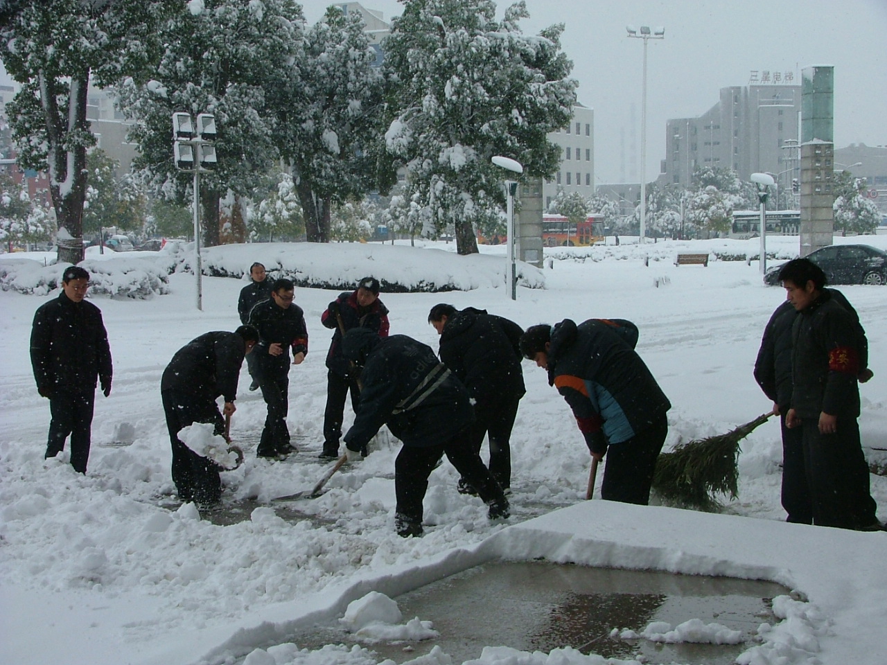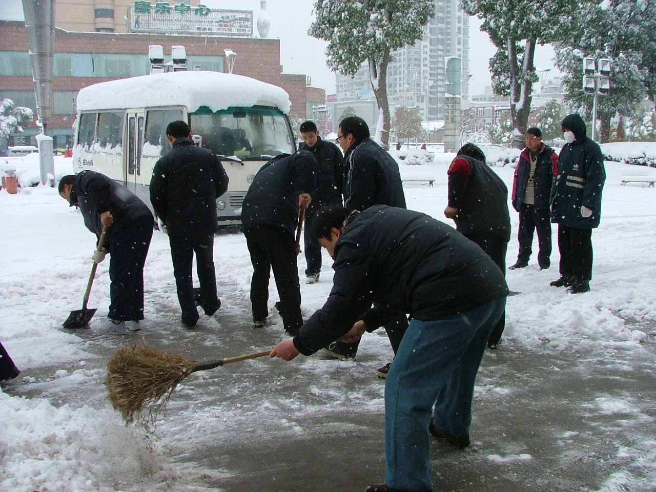 28日上午,为方便客户出入和顾客前来购物,商城迅速行动起来,总经理张旭明同志亲自带头,组织人员,顶着呼啸的风雪,清扫各个市场门前的积雪。有的路段经车辆碾压,积雪已经变成了坚硬的冰层,商城干部员工先用铁锨将冰一块块地撬动,然后再清理到路两边堆放。