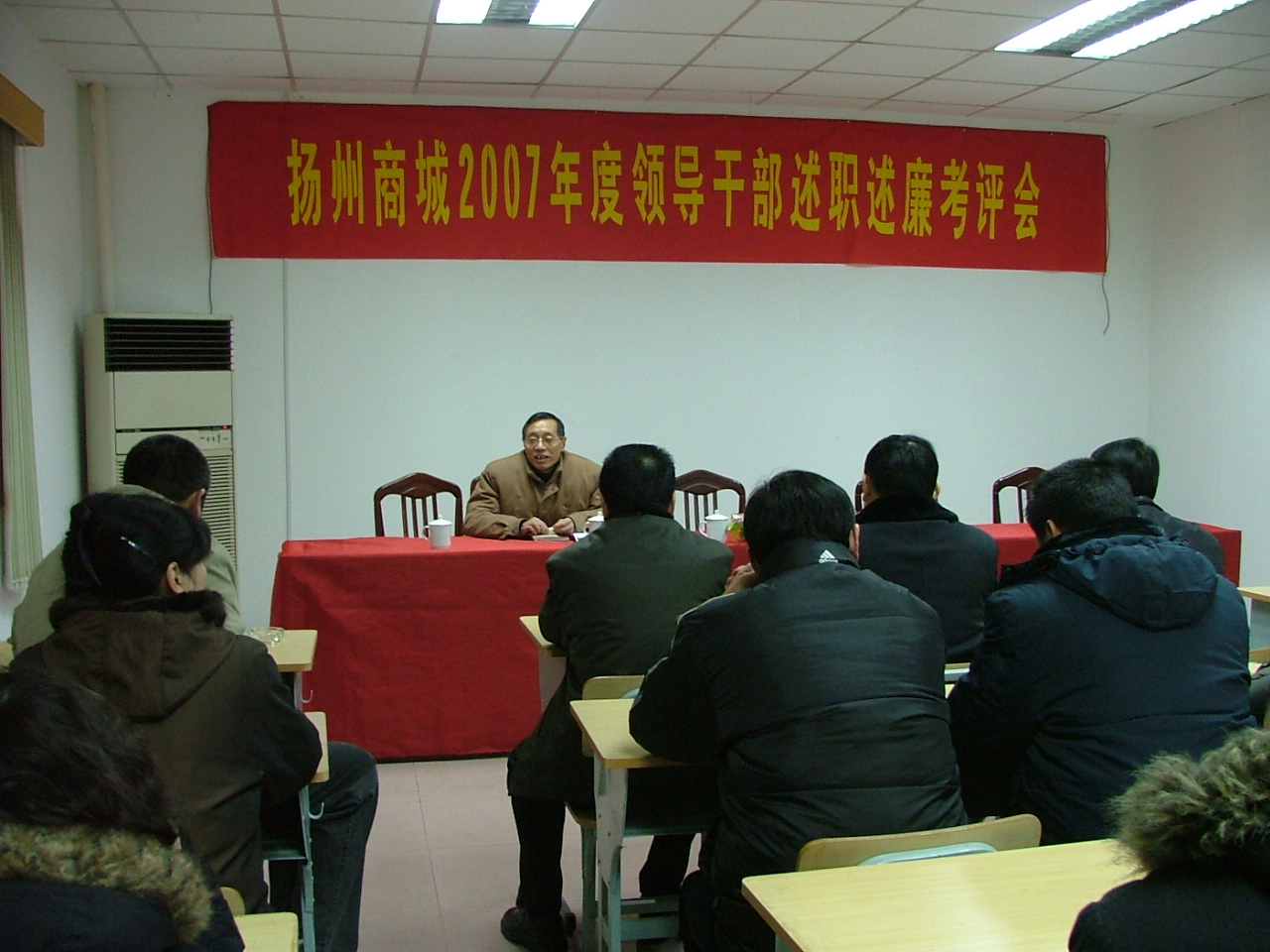 2008年2月2日上午,扬子江集团公司机关党总支书记王明堂和党办张心禺两位同志来商城组织召开了2007年度领导干部述职述廉考评会,商城中层干部和职工代表参加了会议。会上,商城总经理张旭明同志首先作了2007年度述职述廉报告,接着班子成员分别述职述廉。王明堂同志听了商城班子成员的述职报告后,对商城班子集体给予了高度评价。