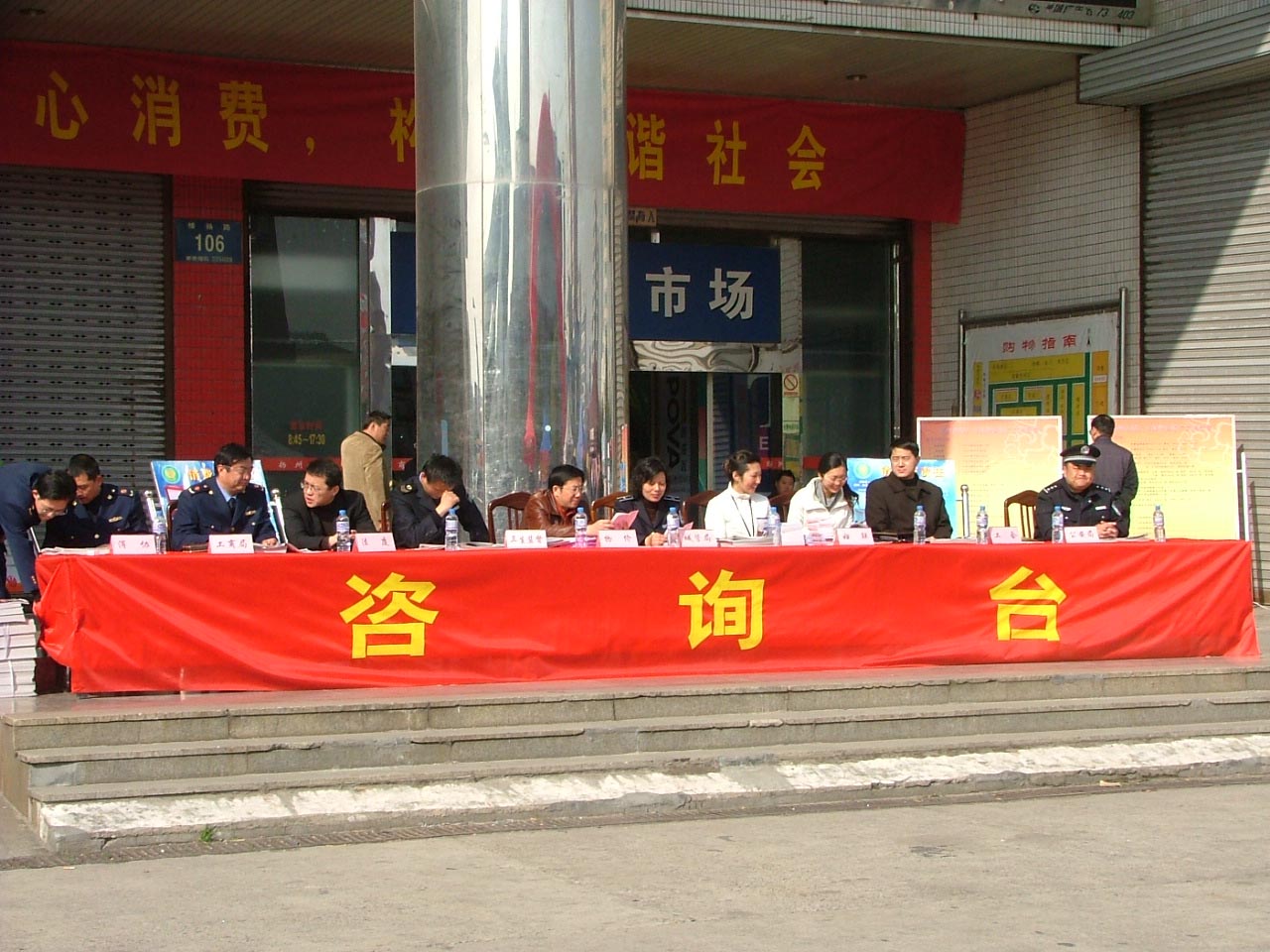 今天是3月15日,国际消费者权益保护日。一大早,扬州商城东门音乐高扬,拱门高耸,东门廊下排着一溜台桌,开发区工商、消协、城管、法庭、质监、物价、妇联等部门联合设立了维权咨询台。南北通道的两侧,建材家具客户忙碌着布展接待,扬州商城隆重举办“感受315,推荐品牌展示会”的主题活动吸引了广大消费者驻足参观。