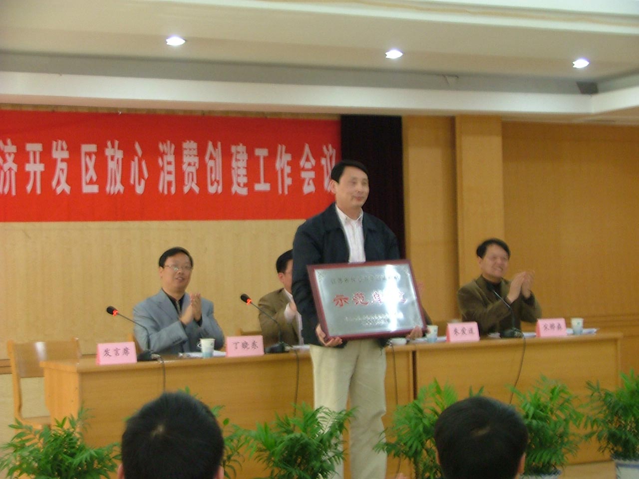 会议表彰了放心消费创建活动示范单位和先进单位,对下一步深入开展放心消费创建活动提出了要求。张旭明总经理代表扬州商城上台领取了“江苏省放心消费创建活动示范单位”的奖牌,并在会上作重点发言。