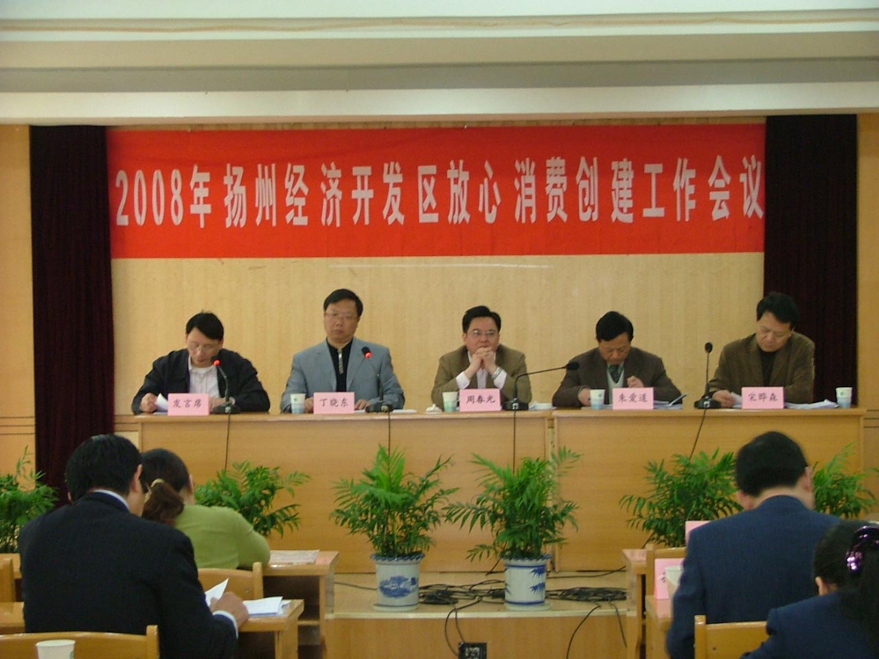 2008年4月26日下午,扬州经济开发区放心消费创建工作会议在市开发大厦隆重召开。市、区工商局、开发区管委会领导以及开发区放心消费创建活动参与单位负责人出席了会议。