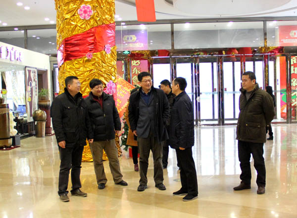 2015年12月31日下午,扬子江集团副总经理周翔率开发部相关负责同志来扬州商城进行了元旦前安全检查,商城总经理江希琪、副总经理王余堂、总经理助理刘卫东等同志陪同。