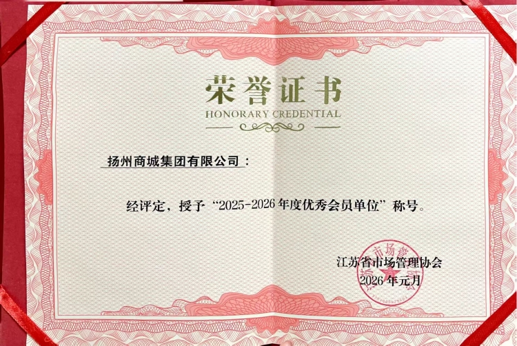 扬州商城凭借在运营创新、消费促进、安全管理和行业协作等方面的卓越表现,被授予“2025—2026年度优秀会员单位”称号。近年来,商城坚持稳中求进、发展创新,持续优化营商环境,提升服务品质,积极融入区域发展大局,有效激发消费活力。本次荣誉的获得,不仅是对商城过往成绩的高度肯定,更是对其在未来继续深化改革、发展创新的激励。