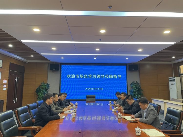2026年3月13日下午,扬州市市场监督管理局副局长张敬武一行来扬州商城开展调研。扬州商城党总支书记、董事长沈兵,副总经理陈康及相关部门负责人接待陪同。
